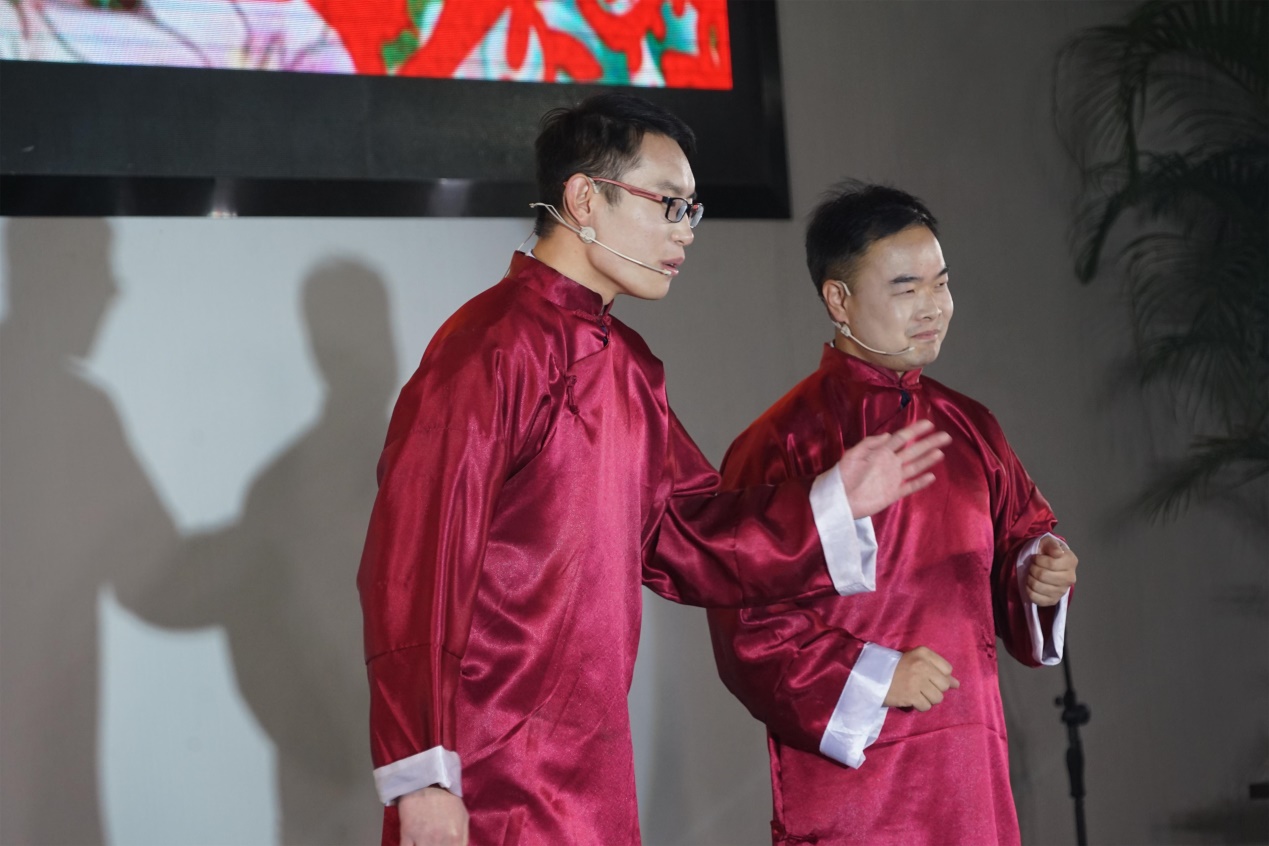 焦紅姐姐與熊大哥的一首情歌對(duì)唱《月亮代表我的心》可謂震撼全場(chǎng),更有震洲歐巴的精彩豫劇《花木蘭》、少甫哥哥的經(jīng)典獨(dú)唱《水手》。今天的領(lǐng)導(dǎo)們一改工作中的嚴(yán)肅認(rèn)真,展現(xiàn)出多才多藝的另一面,有點(diǎn)嗨哦!