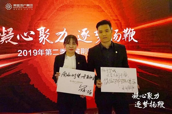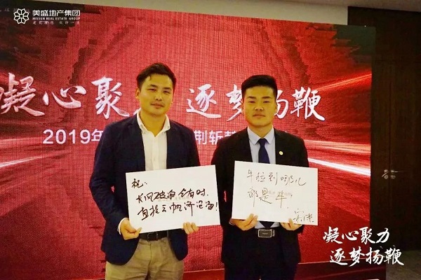 “凝心聚力,筑夢揚鞭,鏖戰無止境”、“馳騁沙場,烽火之勢 ,必將燎原,決勝今朝”,一句句令人熱血沸騰的口號,表明了美盛營銷團隊迎戰市場的決心與勇氣。