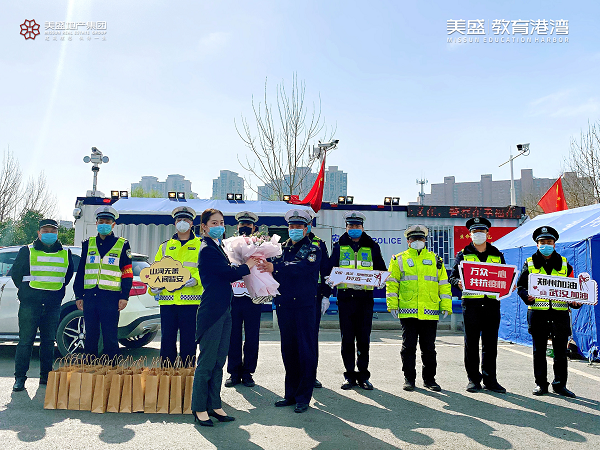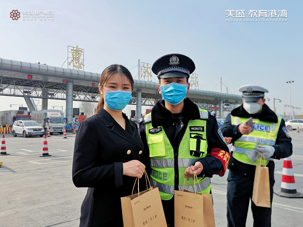 3月12日,美盛教育港灣心懷感恩,走上抗疫一線,慰問那些身處抗疫一線的交警同志們,為他們送上防疫禮包,為全民抗疫貢獻自己一份微薄之力。