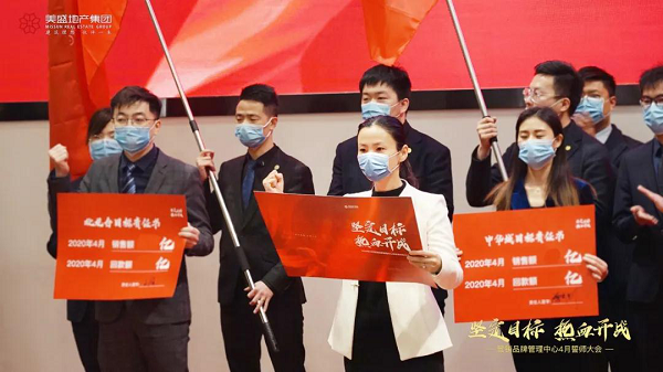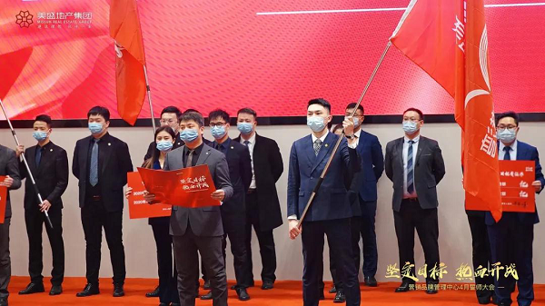 山河無恙,祖國安康。2020年4月2日上午,在這充滿希望的時刻,美盛地產集團4月份月度會暨誓師大會在美盛·教育港灣營銷中心隆重啟幕;美盛地產集團領導、中心策劃、渠道、銷管、案場、人力各條線負責人、項目營銷負責人及各項目營銷精齊聚一堂,以飽滿的精神,昂揚的斗志吹響了4月份的戰斗號角,誓為目標而戰!