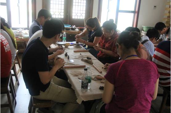 中午大家體驗了過堂素齋,午休過后大家接著體驗了陶藝和禪茶。