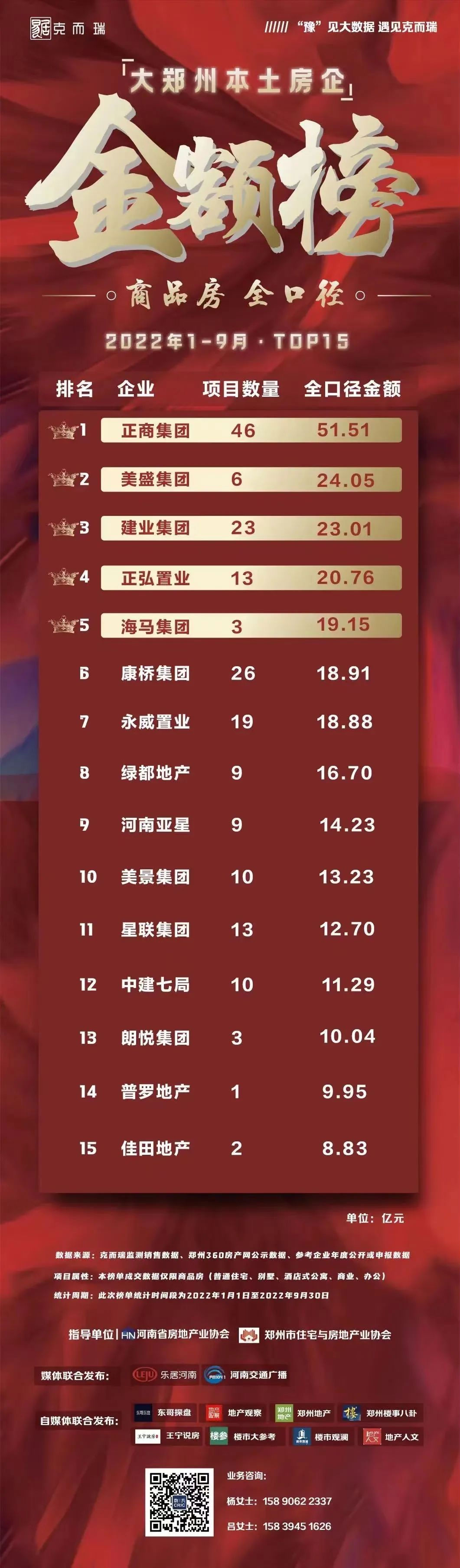 同時,教育港灣項(xiàng)目榮膺1-9月主城8區(qū)“銷售金額榜TOP”、金水區(qū)“功能改善TOP1”,金水印項(xiàng)目榮膺1-9月主城8區(qū)“銷售金額榜TOP6”、金水區(qū)“高端改善TOP1”……(數(shù)據(jù)均來源:克而瑞監(jiān)測項(xiàng)目銷售數(shù)據(jù))
