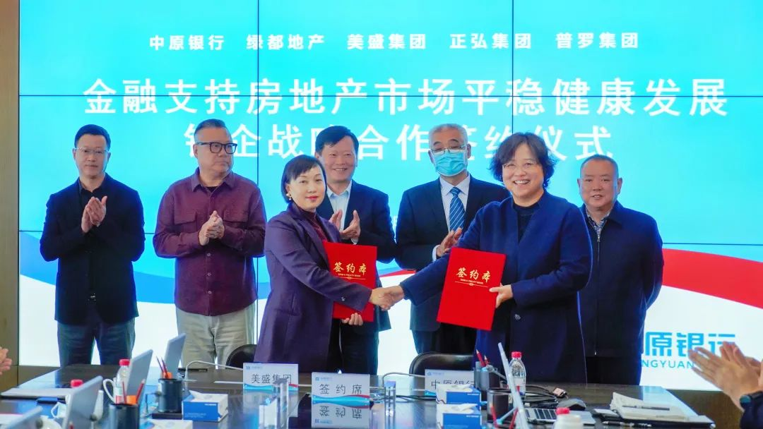 2022年12月2日,美盛集團與中原銀行股份有限公司(以下簡稱中原銀行)簽署全面戰略合作協議。中原銀行為美盛集團提供總額不超過人民幣100億元的綜合授信服務。雙方本著“資源共享、優勢互補、互惠互利、合作發展”的原則,將在地產開發建設、供應鏈金融服務、業主個人金融服務、物業管理服務等領域重點開展深度合作。