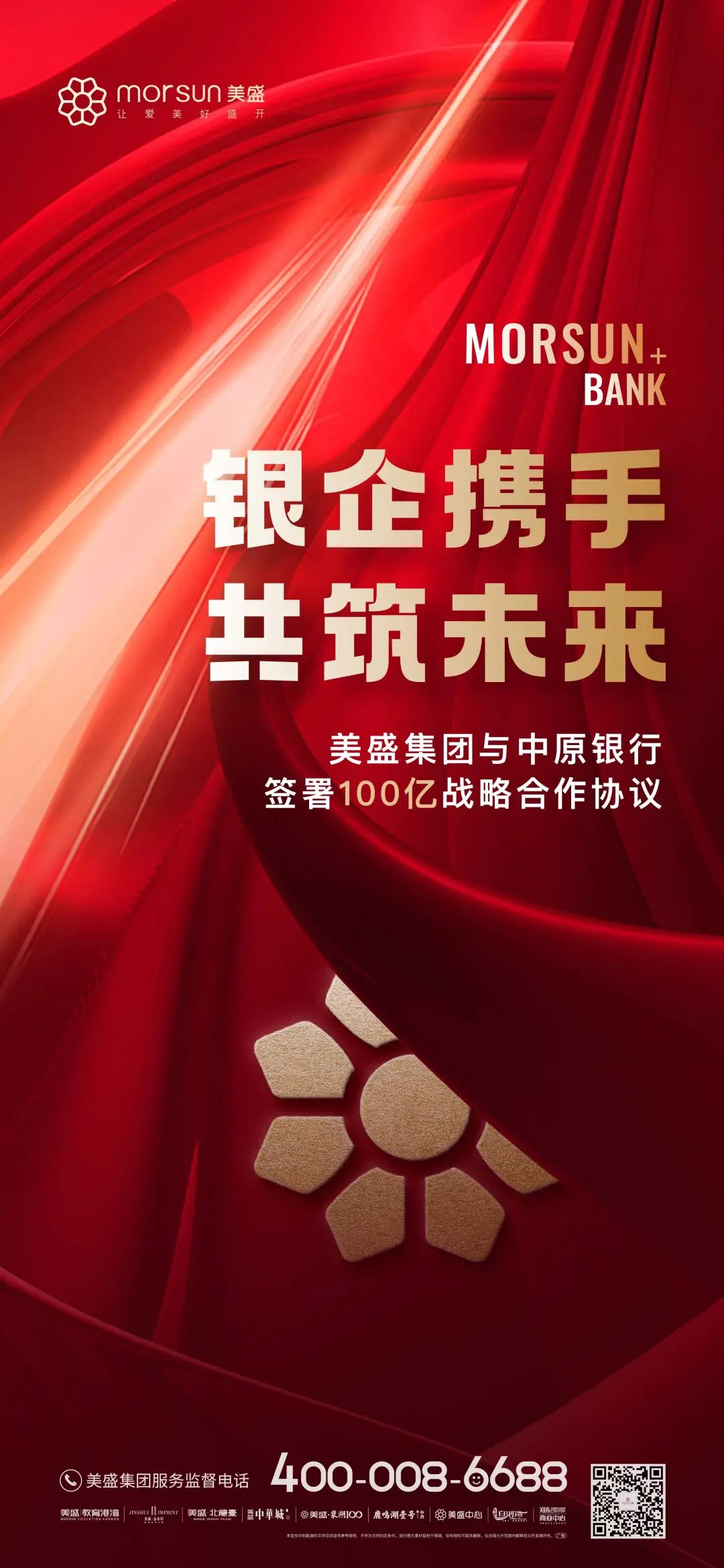 美盛集團成立于2004年,是一家擁有國家一級房地產開發資質,總資產超過500億的集團性公司,旗下擁有地產開發、文化旅游、生物制藥、酒店管理、金融投資、網絡科技、基礎設施建設七大板塊。18載砥礪前行,立足鄭州,深耕中原,拓局全國,始終堅持“美善”的品牌核心價值觀,以“讓愛美好盛開”為品牌理念,為中國家庭提供生活方式解決方案;踐行“以客戶為中心,以奮斗者為美,與同路者同行”的企業文化,彰顯全員價值貢獻,與合作者共贏。一路走來美盛完成了河南省房地產10強的進階,在疫情反復的三年里,更是憑借穩健的發展和極具匠心的產品力,銷售業績逆勢而上,穩居河南本土前三。