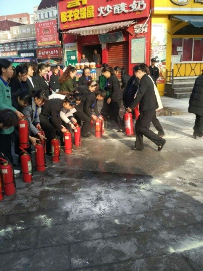上午8:30,義務消防隊隊員為商場營業員、管理人員、新天地商戶詳細講解了滅火器的使用方法,實施現場操作滅火以及基本的消防安全常識與逃生自救知識。