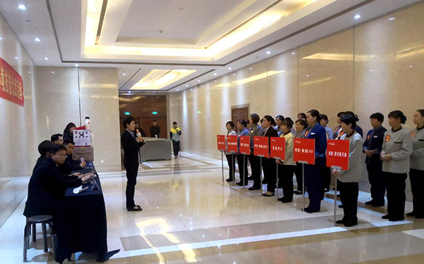 嚴謹負責的評委團,通過玻璃保潔、電梯清潔和衛生間清潔,三大關卡,層層篩選,考驗每一位參賽者的現場實操演練、步驟清晰、凸顯服務技能能力,進行現場評分。我們的參賽人員也各個精神飽滿、神采奕奕,表現出自信滿滿、誰與爭鋒的比賽精神,全力為自我工作崗位能力比比高低。