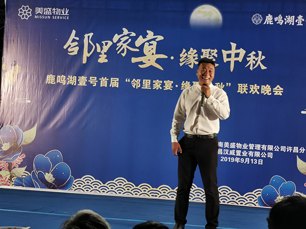 慶祝中秋佳節,喜迎新中國成立70周年大慶,王總上臺為本次活動致辭,致辭中表達了實現鄰里間的相識、相知、相助,把一個個溫馨的小家庭串成和睦的大家庭,共建“鄰里關愛、團結互助”的鄰里關系。