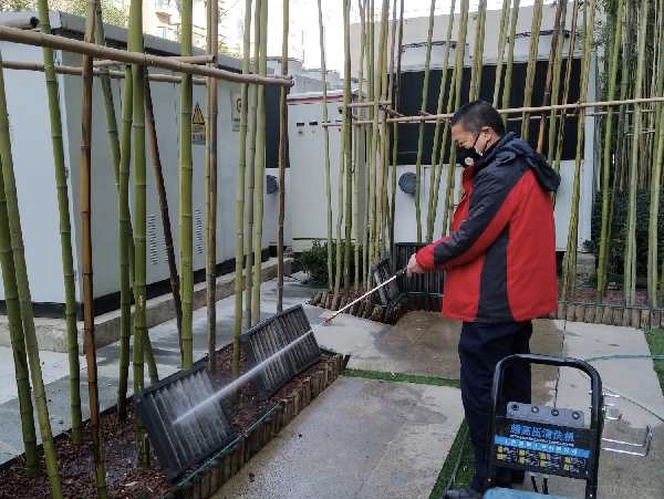 各項目整改公共區(qū)域環(huán)境消毒計劃,綠化帶、喬灌木進行全面澆水、施藥;園區(qū)、案場、商業(yè)、寫字樓外圍地面、車棚沖刷清洗,垃圾桶、垃圾站全面清潔消毒;對工程部倉庫進行材料規(guī)整,清除廢舊物品,物品上架擺放整齊。